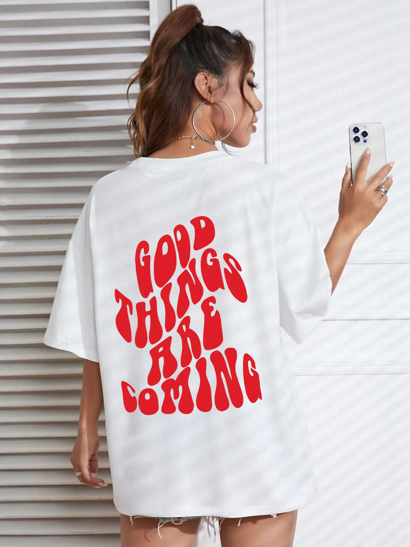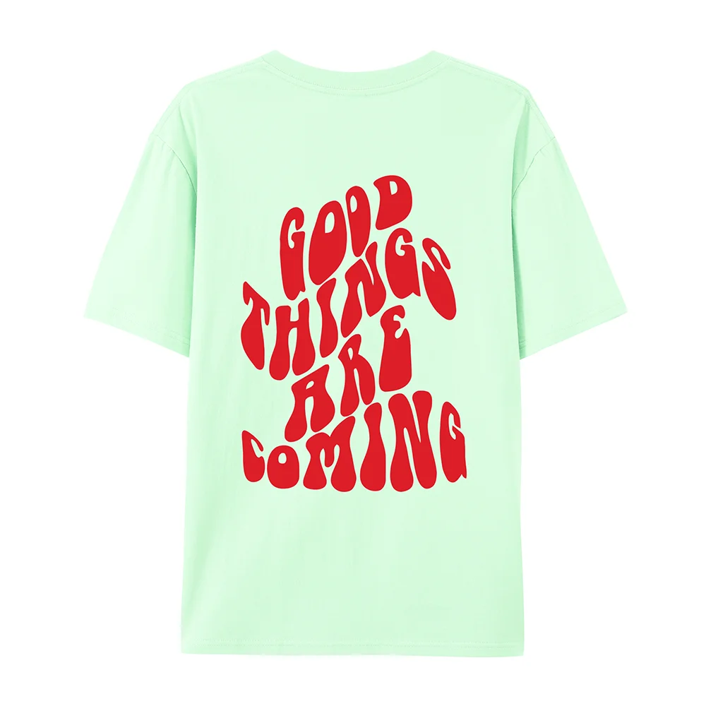 Good Things Are Coming Slogan Letter Printing T-Shirt Women Cotton Clothing O-Neck Breathable Short Sleeve Loose Oversize Tops